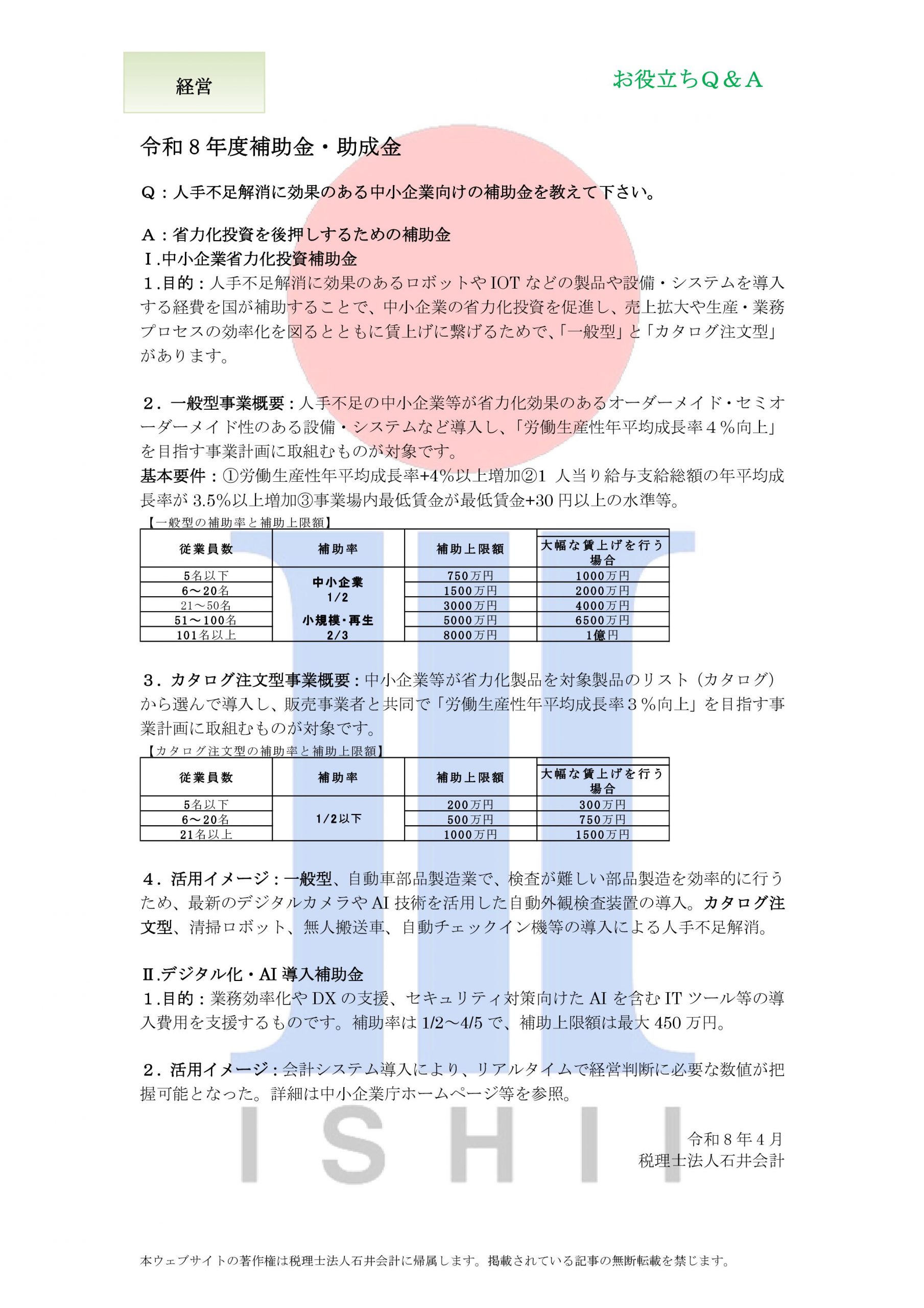 Q:人手不足解消に効果のある中小企業向けの補助金を教えて下さい。