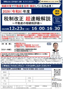 ※2025年12月19日までに2026(令和8)年度の税制改正大綱等のリリースが無い場合、延期とさせていただく場合がございます。